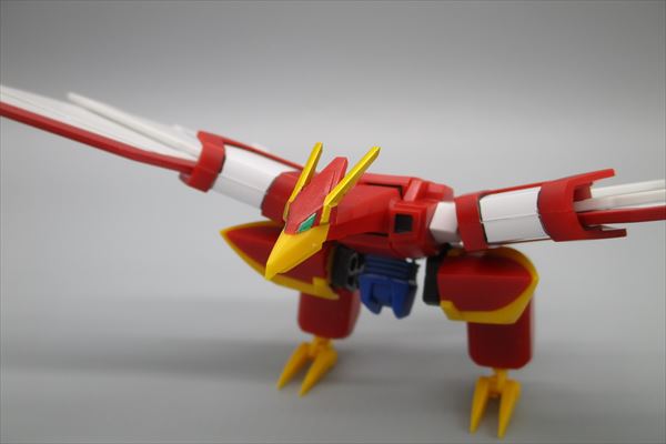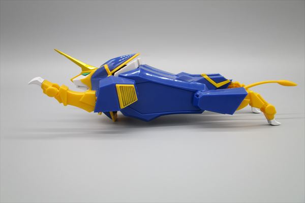 首は上下に頭部はBJ可動 脚部はライジンオーの腕のままなので基部で前後に上腕でロール、肘関節と爪が可動